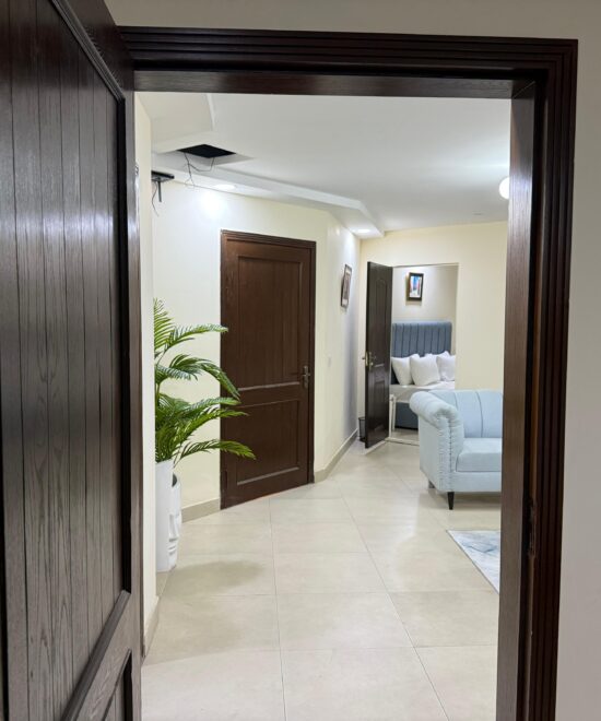 The 2 Beds Apartment #2002 is designed for families, colleagues, or small groups who value both comfort and space. With two well-furnished bedrooms, a cozy living area, a fully equipped kitchen, and a modern bathroom, this apartment offers the perfect setup for a convenient and enjoyable stay. Its stylish interiors create a warm and inviting atmosphere, while the practical layout ensures privacy for each guest. Whether for a short vacation or a longer stay, Apartment #2002 provides the ideal combination of comfort, functionality, and access to all that Gulberg has to offer.