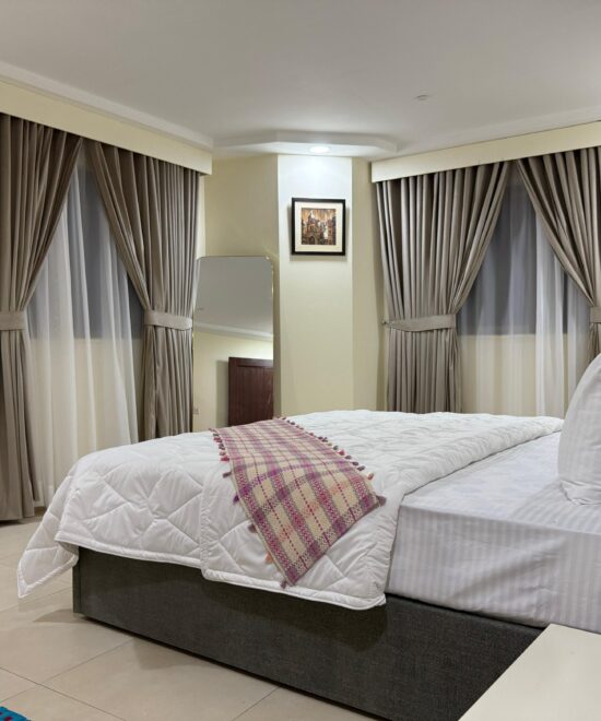 Our One Bed Apartment is the perfect choice for solo travelers, couples, or business professionals who want both comfort and convenience. Elegantly furnished and thoughtfully designed, this apartment features a cozy bedroom, a stylish living space, a well-equipped kitchenette, and a modern bathroom. Every detail has been carefully planned to create a welcoming environment, blending luxury with practicality. Whether you’re staying for a few nights or an extended period, the One Bed Apartment offers the privacy and peace you need, while keeping you connected to the vibrant lifestyle of Gulberg.